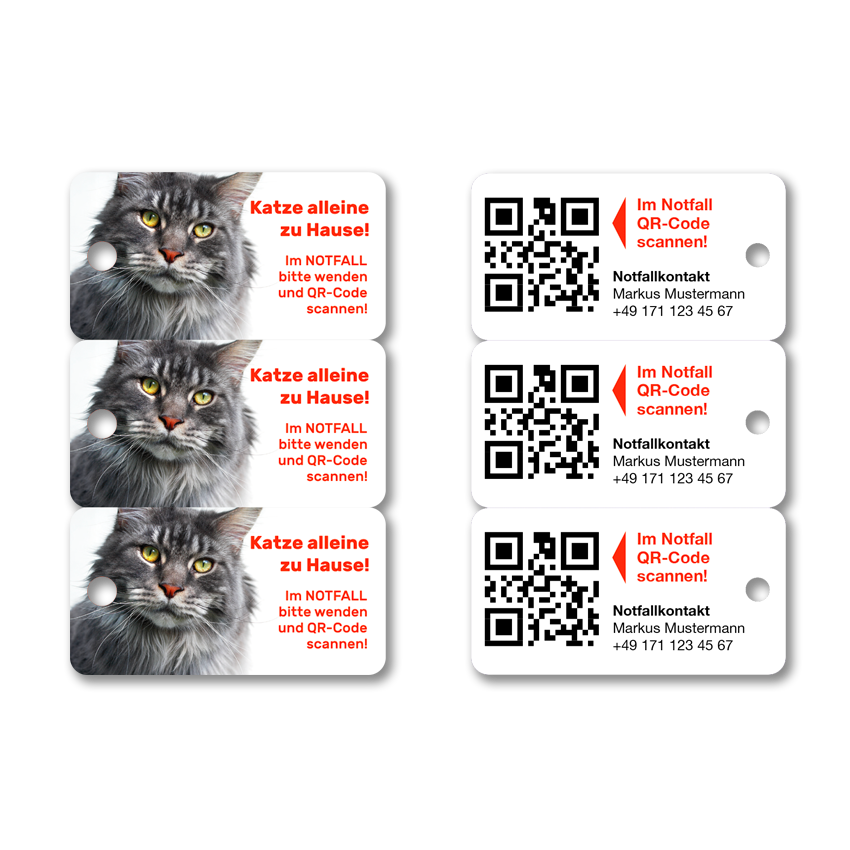 Notfall-Schlüsselanhänger für Haustierhalter „Maine-Coon“ (3er-Set)